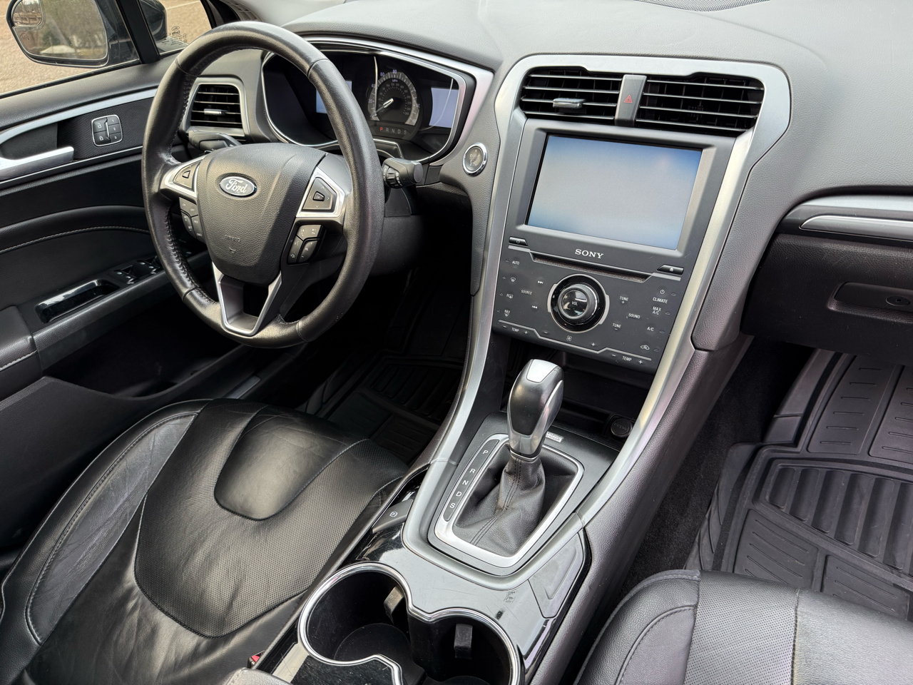 2014 Ford Fusion Titanium. LOADED and priced to sell! Fuel efficient 2.0 liter 4 cylinder mated to a six speed automatic transmission, ice cold air, power windows and door locks, tilt wheel, cruise control, power tilt and sliding sunroof, dual power, heated seats with driver memory, premium Sony sound system with backup camera, Bluetooth, remote security system with keyless entry, remote engine start, 18" alloy wheels, front and side airbags and more. 192,240 well-maintained miles. Finished in Tuxedo Black Metallic with Charcoal Black leather. Looks, runs, and drives great! Please CALL 334-320-3113 for more information. Partial trades plus cash considered. Financing available through third party lenders, but I'm sorry, no in-house financing is available. Stop by and take a look in person at 2217 US Hwy 231 S, Wetumpka, AL 36093 (right next to El Encanto Mexican restaurant) or view our complete inventory 24/7/365 at Showcase-Automotive.com.