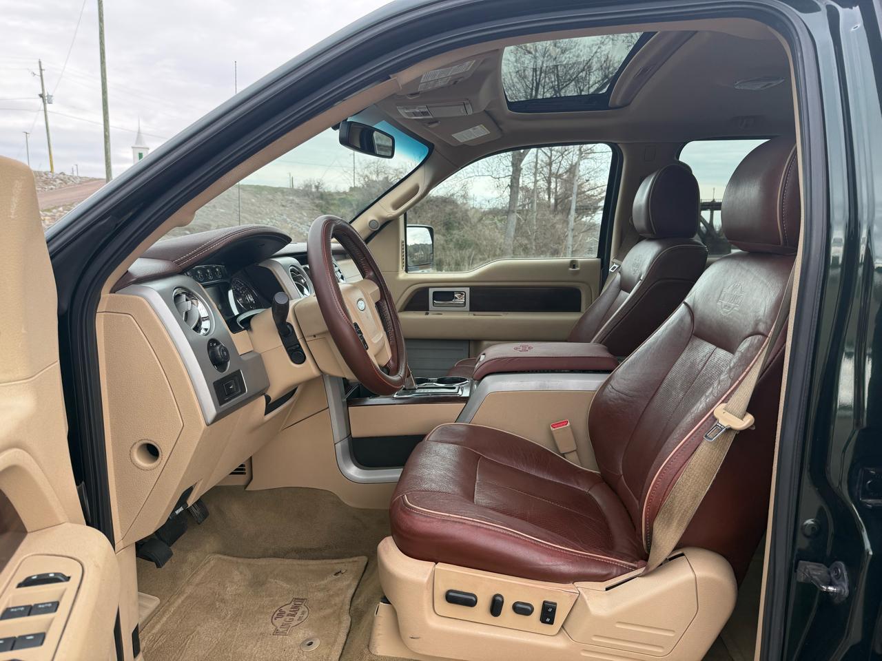 2012 Ford F150 4x4 SuperCrew King Ranch. This one is LOADED! Only two owners and NO accident history. Powered by Ford's 3.5 liter 365hp EcoBoost V6 turbo mated to a six speed automatic transmission, ice cold air, power windows and door locks, power tilt and telescopic wheel, cruise control, power tilt and sliding sunroof, dual power seats, heated seats, premium Sony sound system with navigation, Bluetooth, backup camera, Off-Road package, side steps, tailgate step, 20" alloy wheels, remote security system with keyless entry and more. 187,150 well-maintained miles. Finished in Green Gem with Redwood leather. Looks, runs, and drives GREAT! Please CALL 334-320-3113 for more information. Partial trades plus cash considered. Financing available through third party lenders, but I'm sorry, no in-house financing is available. Stop by and take a look in person at 2217 US Hwy 231 S, Wetumpka, AL 36093 (right next to El Encanto Mexican restaurant) or view our complete inventory 24/7/365 at Showcase-Automotive.com.